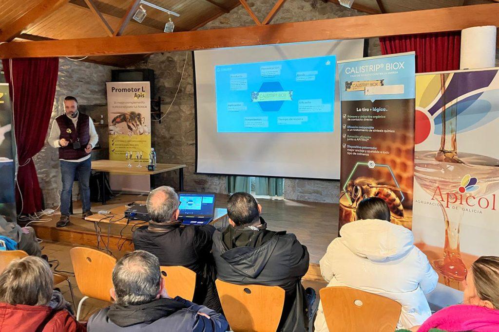 O especialista destacou a dificultade de desenvolver novos tratamentos eficaces e seguros, xa que “hai que matar a varroa sen matar a abella nin contaminar o mel”. Neste contexto presentou Calistrip Biox, un acaricida a base de ácido oxálico de liberación prolongada, capaz de manter a súa eficacia durante polo menos seis semanas no interior da colmea. “É innovador porque conseguimos darlle estabilidade ao ácido oxálico nunha tira, algo que non ocorre con outros métodos como o goteo ou a sublimación, que actúan só no momento da aplicación”, sinalou Casillas, subliñando tamén as vantaxes en termos de manexo e dosificación para o apicultor.